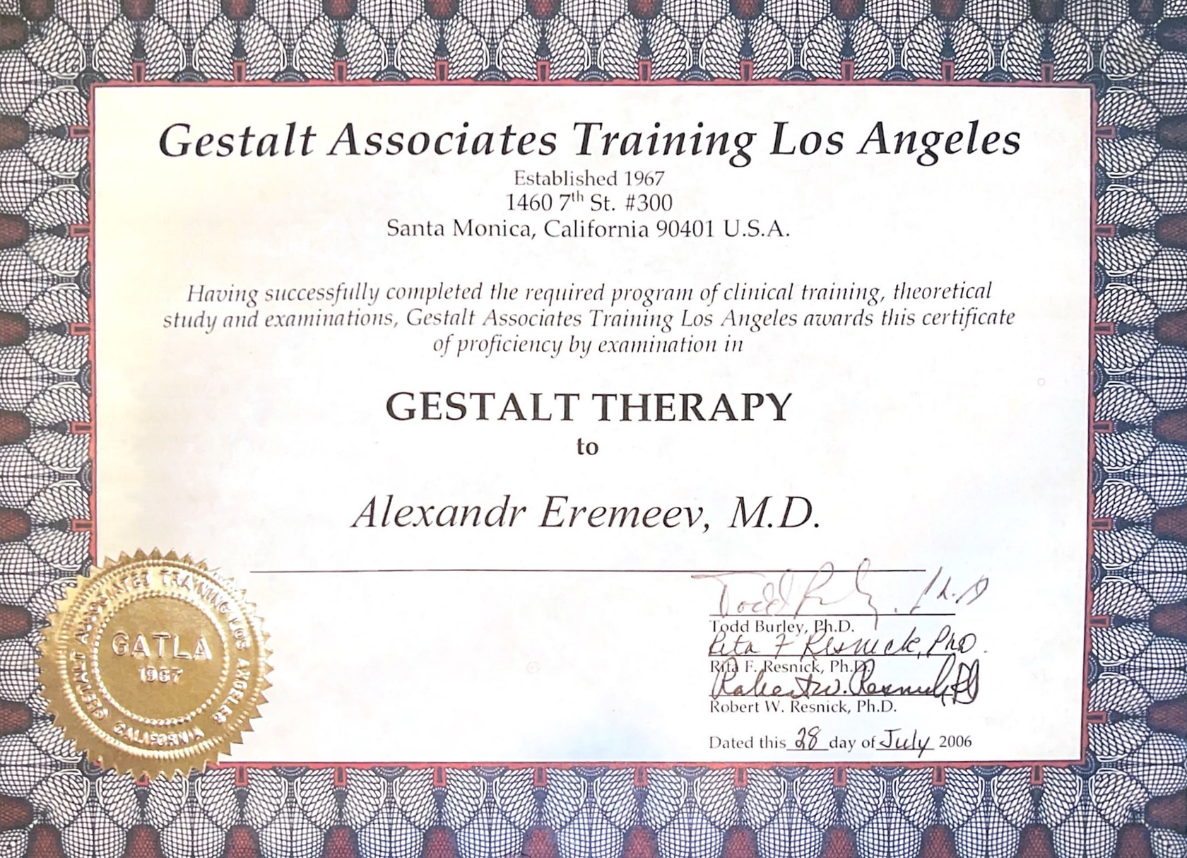 ГАТЛА - это школа , которая обучила много поколений гештальт-терапевтов в США и Европе. Для меня там самое главное ядро было то, что обучение проходило среди терапевтов из разных стран, а это позволяет менталитет разных людей понимать. Из Восточной Европы, из Западной Европы, помогает узнать как устроена психотерапия в Германии, во Франции , в Италии, в Чехии, Словакии. Дает широту взгляда.