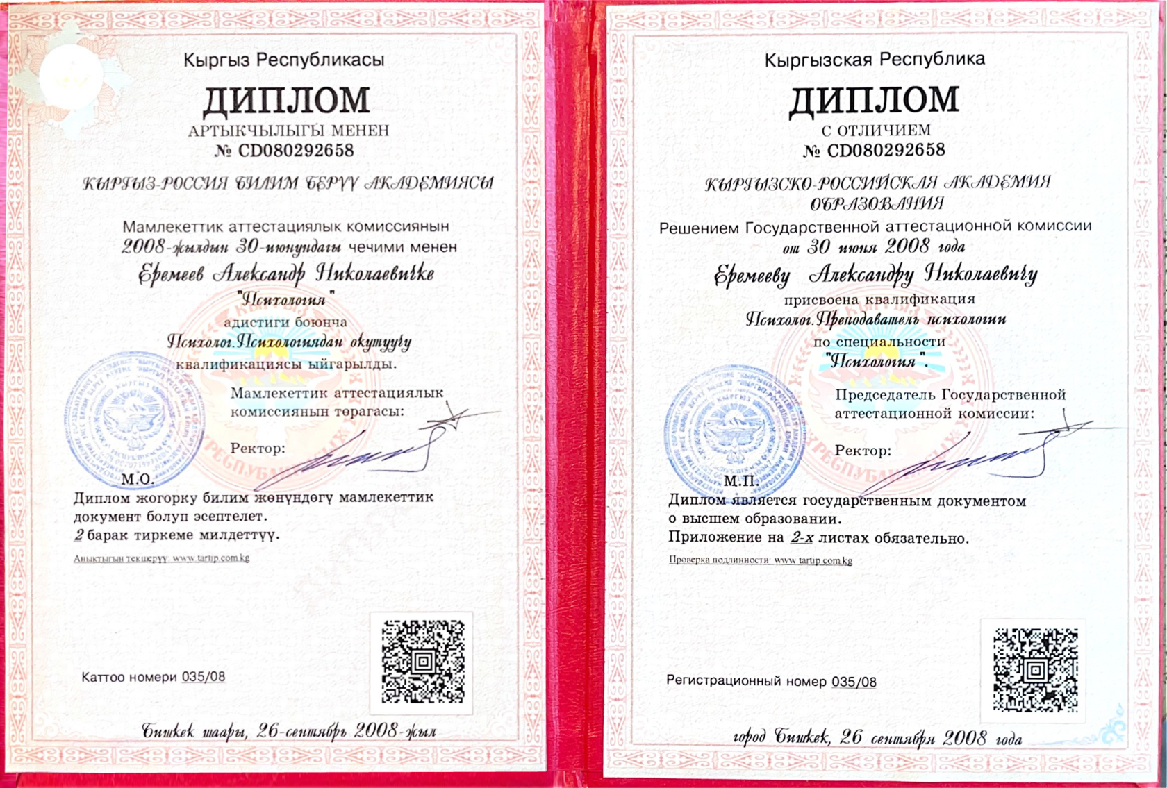 Диплом медицинского инстититута – это моя альма-матер. Это образование мне очень многое мне дало. Я узнал про устройство человека , узнал как это работает , узнал про болезни и столкнулся с очень талантливыми людьми в помогающей профессии, которые помогают людям сохранять здоровье, его возвращать в случае болезни. Это диплом, который мне дает большую базу. Позволяет видеть не просто через психологические линзы, но и видеть то, что проявляется психологически, но является болезнью.